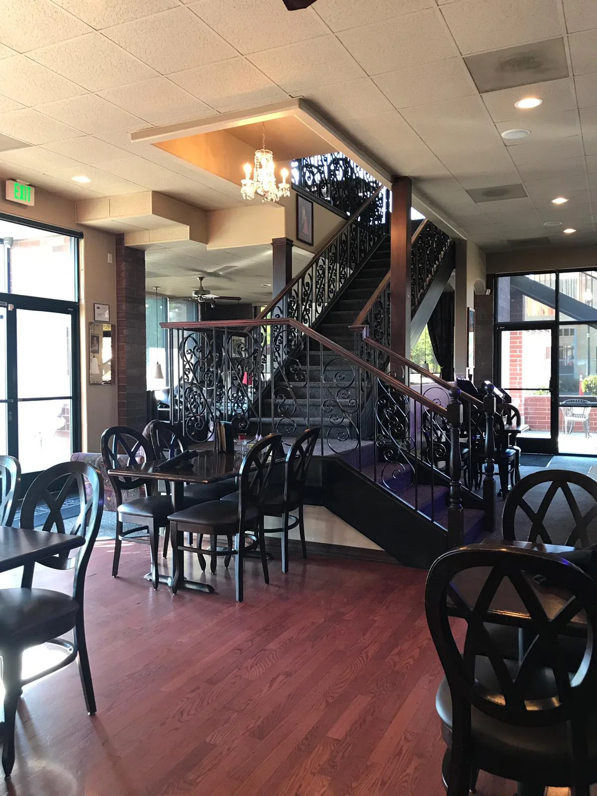Being surrounded by windows creates a very spacious feeling and with direct access to the upper wrap-around patio increases the capacity and enjoyment of the room in warmer months. On a clear day parties have a view of Mt. Hood.